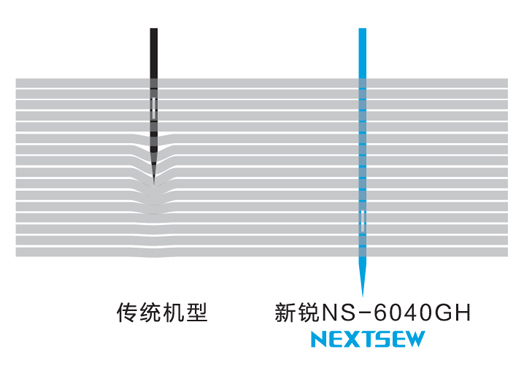 精確落針,同時接納高剛性的伺服節制送布機構。即便高速縫紉或縫制厚料時也可完成高精度縫制,不會產生電腦縫紉機常有的偏位景象。別的搭載了微弱的馬達(750W),即便在低速縫制時也能取得壯大的機針貫串力,厚料縫制也能順遂停止。